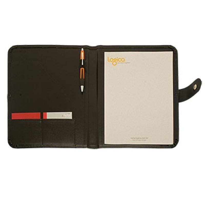 Produzida em couro legítimo, sintético ou ecológico, a pasta congresso com 2 bolsos pode ser personalizada em baixo relevo com seu logotipo, sendo um brinde exclusivo e requintado, ótimo para dar uma maior exposição de sua marca. Consulte-nos, temos condições especiais para você!